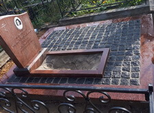 Облицевали бетон полированным гранитом, на территорию участка уложили брусчатку, предварительно приподняв памятник.