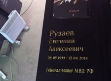 Строгий мемориальный комплекс из черного гранита генерал-майора МВД РФ на Троекуровском кладбище